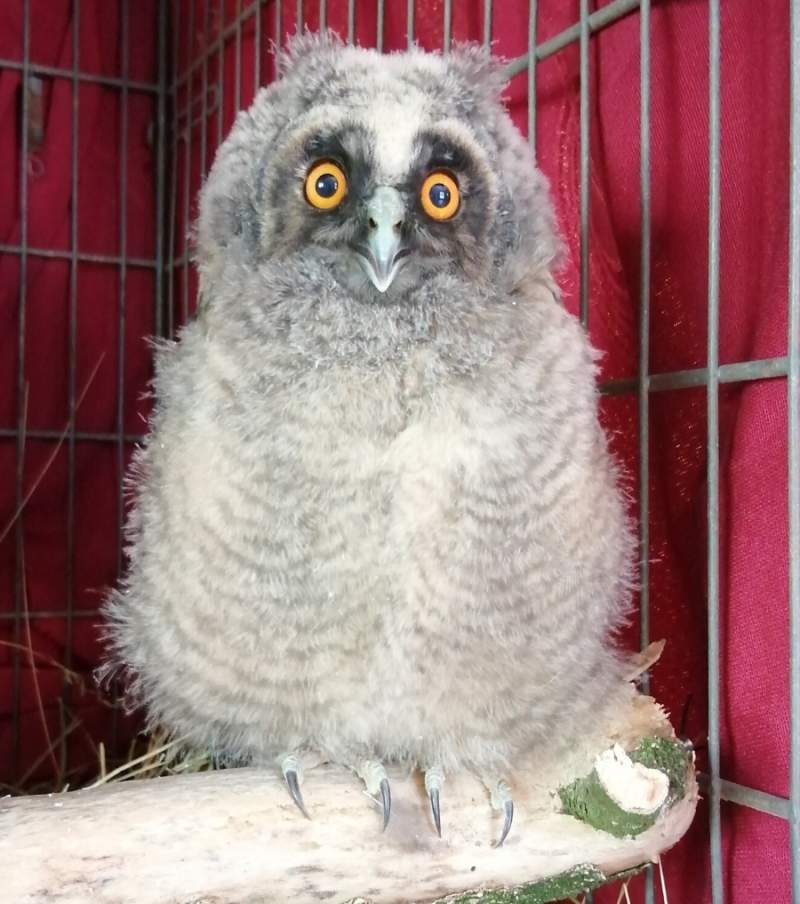 Deze uil was bij de dierenarts binnengebracht door mensen die hem of haar na een flinke storm hadden gevonden, ze hadden het dier beter met rust kunnen laten want zo goed als zeker waren de ouders nog in de buurt en die zouden hem nog wel gevoerd hebben, jonge uilen gaan vrij jong uit het nest maar worden daarna nog zeker 6 tot 8 weken door hun ouders gevoerd. We kunnen dan ook eigenlijk alleen maar waarschuwen deze jonge dieren met rust te laten net zo als al die jonge hertjes die door goed bedoelende mensen worden opgepakt, niet doen de ouders zijn altijd wel ergens in de buurt,