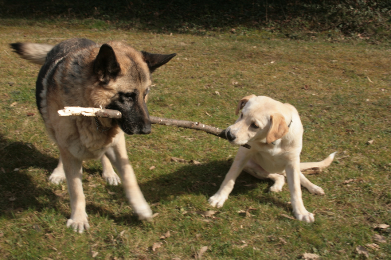Ze zijn altijd ergens samen te vinden en niets is fijner om samen muisjes uit te graven of stokken op te halen en samen de paarden pesten is ook een favoriete hobby, iets waar de paarden zich trouwens helemaal niets van aantrekken ,duidelijk is wel dat Fay daarvan de aanstichtster is want als Robbie alleen bij de paarden is dan blijft alles rustig.